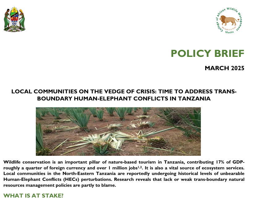 Wildlife conservation is an important pillar of nature-based tourism in Tanzania, contributing 17% of GDP- roughly a quarter of foreign currency and over 1 million jobs1,2. It is also a vital source of ecosystem services. Local communities in the North-Eastern Tanzania are reportedly undergoing historical levels of unbearable Human-Elephant Conflicts (HECs) perturbations. Research reveals that lack or weak trans-boundary natural resources management policies are partly to blame.